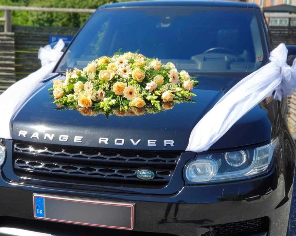 - Blomster til bryllupsbil